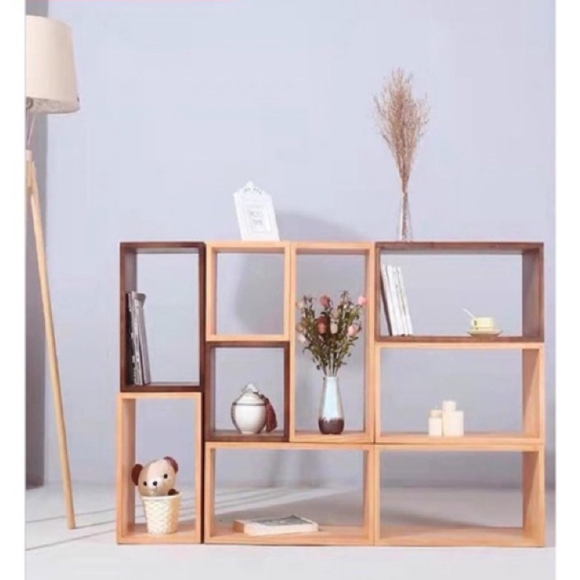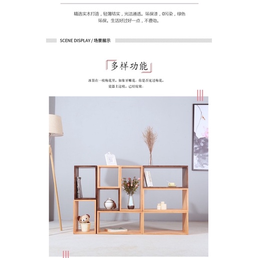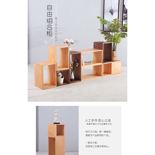 Japanese-style solid wood storage lattice cabinet, simple and multifunctional free combination bookcase storage cabinet
