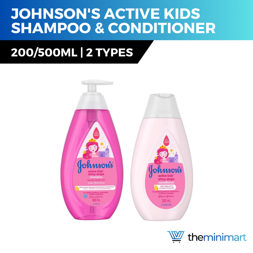 Johnson's Active Kids Shiny Drops Shampoo 500ml Conditioner 200ml Milk + Oath Bath Milk + Rice Bath Top to Toe 500ml