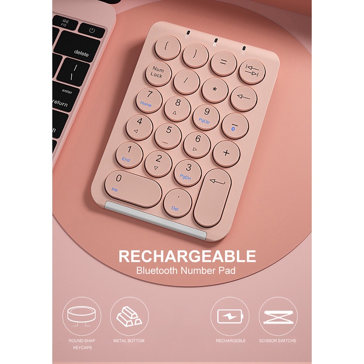Jomaa Portable Number Pad 22 Keys Bluetooth Numeric Keyboard Rechargeable Wireless Numeric Keypad for i0s Windows M.c