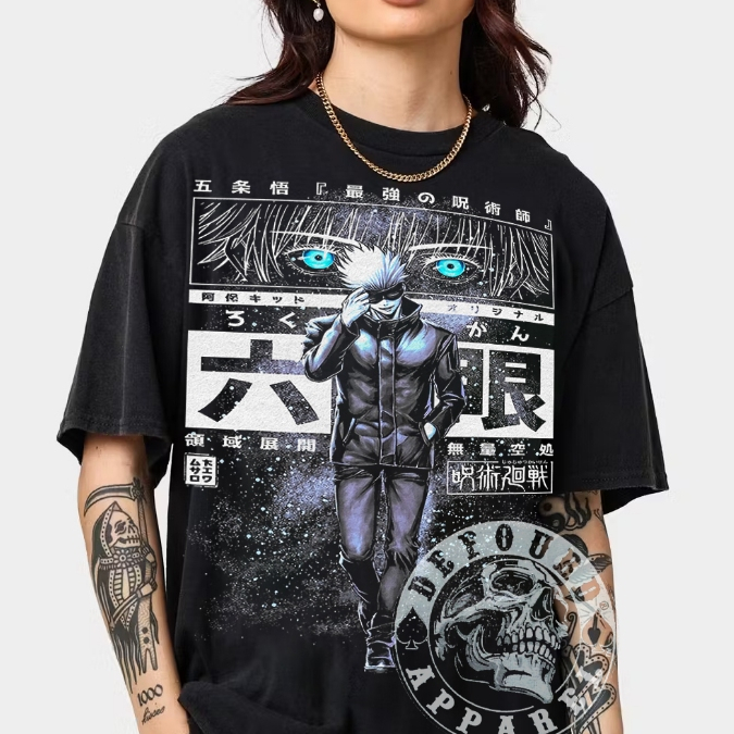Jujutsu Kaisen Satoru Gojo Anime T-shirt, Satoru Gojo Anime Vintage Wash Jujutsu Kaisen, Oversized Style Premium Anime T-shirt