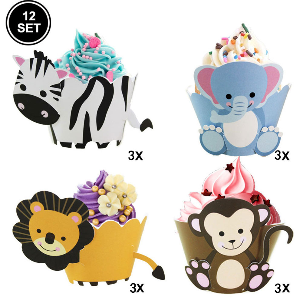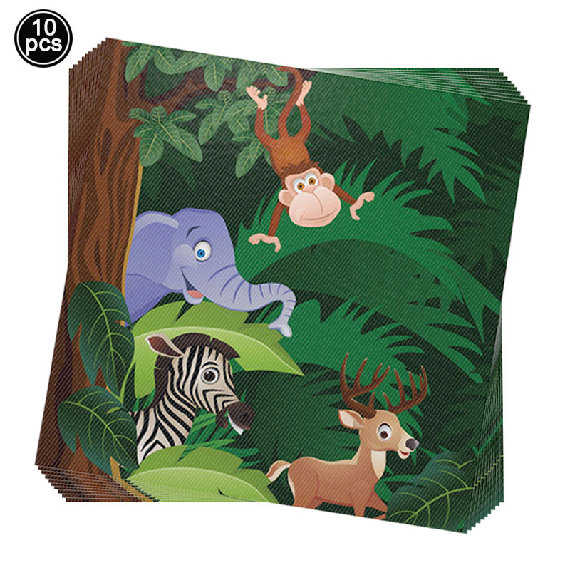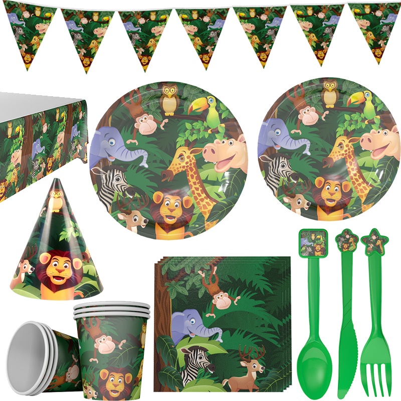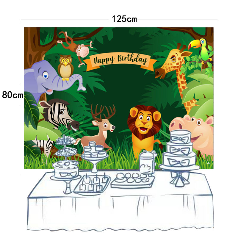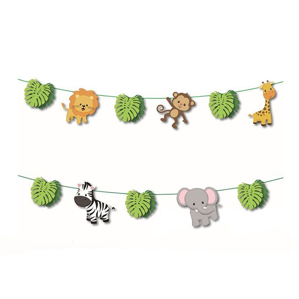 Jungle Safari Birthday Party Decoration Set Animal Banner Balloons Cupcake Topper Leaves for Kids Boys Zoo Themed Party Supplies