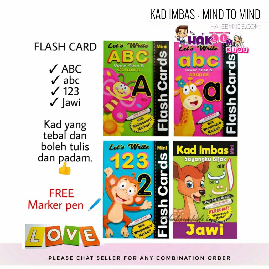 KAD IMBAS ABJAD JAWI NUMBER FLASH CARD FOR KIDS LEARNING (TULIS DAN PADAM)