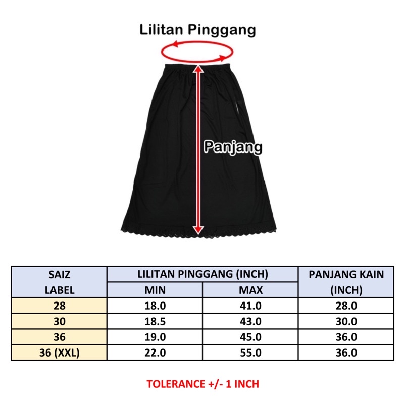 KAIN DALAM JENIS SKIRT KAIN DALAM MUSLIMAH PETTICOAT INNER SKIRT