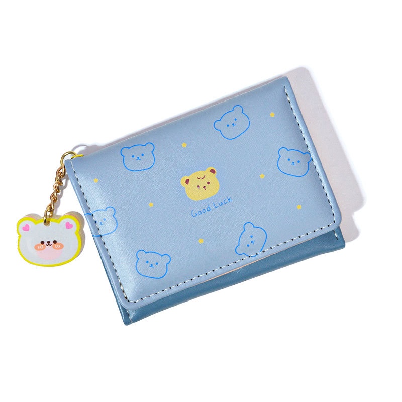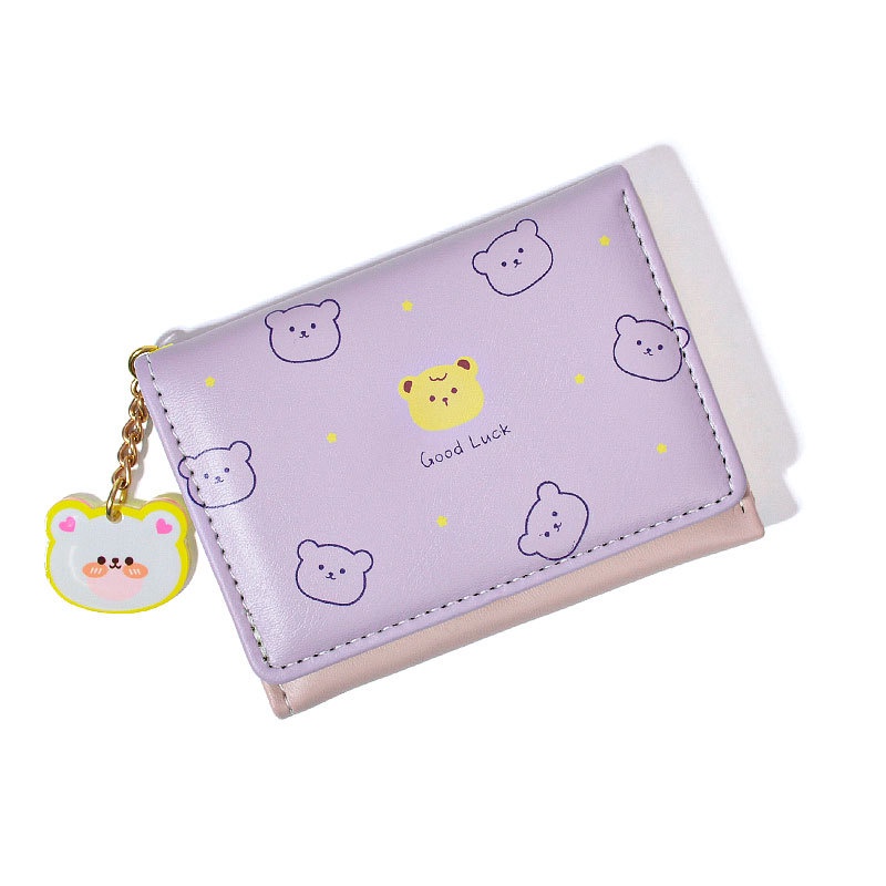 KAITIFEI Cute Bear Anime Short Girl's Wallet Student Printed Folding Leather Bag Cartoon Coin Purse