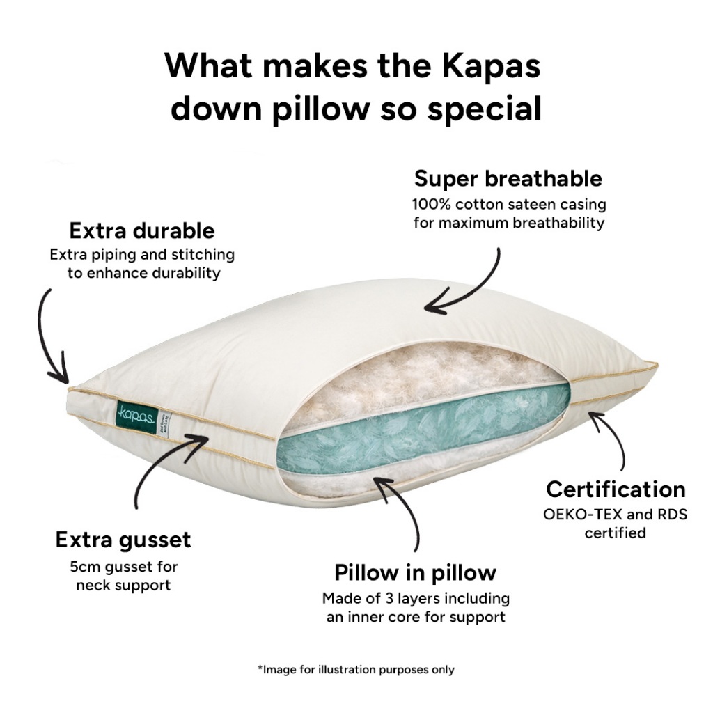 KAPAS LIVING | Down Feather Pillow (Upgraded) | Fluffy 5-Star Hotel Quality | Standard & King | Free Canvas Bag