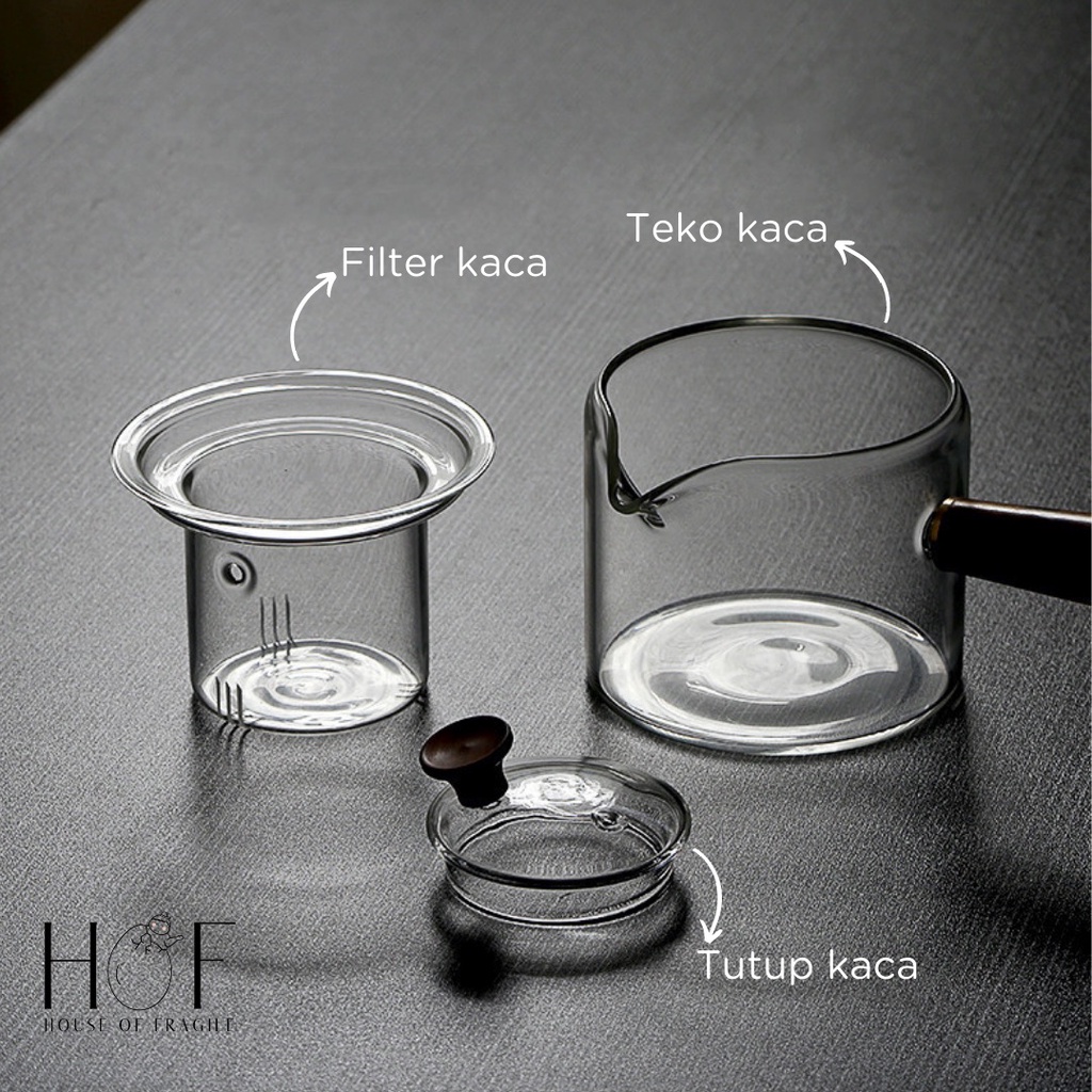 KAYU [HOF] TIPO Aesthetic Glass Filter Tea Pot - Unique Cafe Aesthetic Pot Pitcher With Cafe Wooden Handle