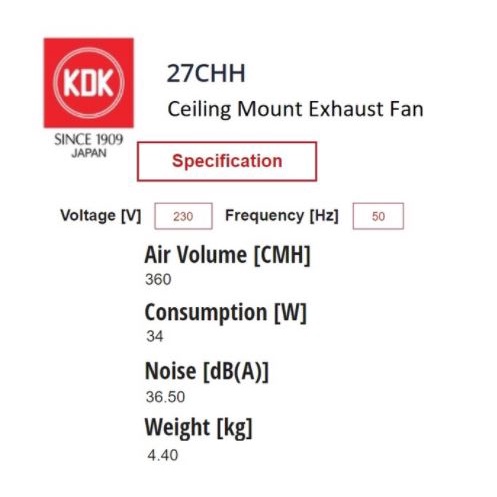 KDK 27CHH CEILING MOUNT EXHAUST FAN