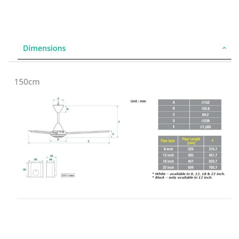 KDK 3 BLADE CEILING FAN 150CM, M60SG