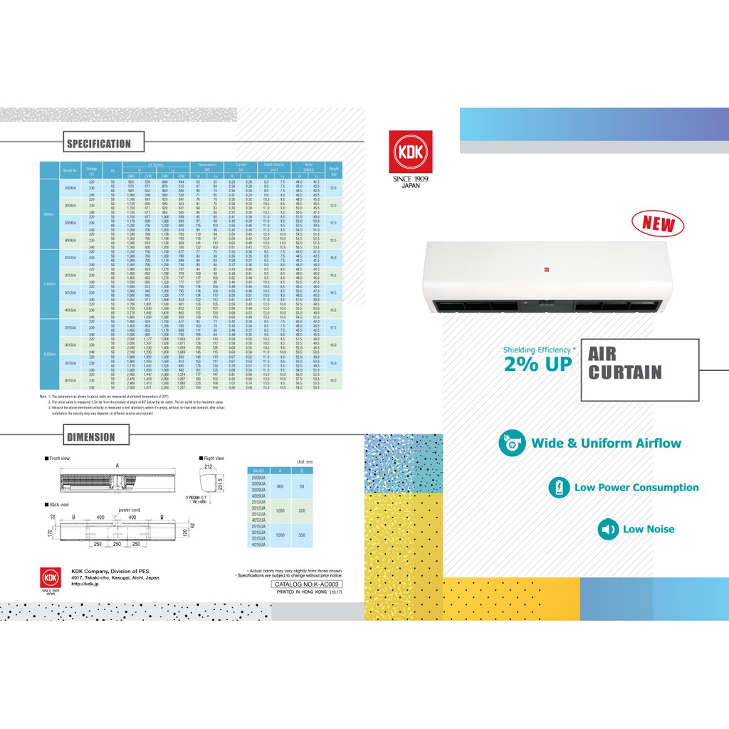 KDK 3009UA/3012UA/3015UA Air Curtain with unique sirocco fan design