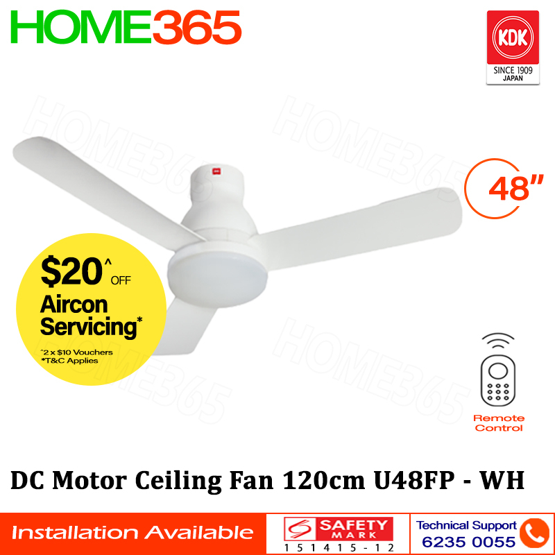 KDK DC Motor Ceiling Fan 120cm with LED Light & Remote 48" U48FP