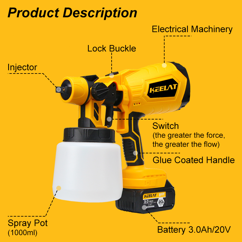 KEELAT KESG001 Cordless Electric Spray Gun 800W 800ml High Power Paint Sprayer Disinfection Sterilization Sprayer