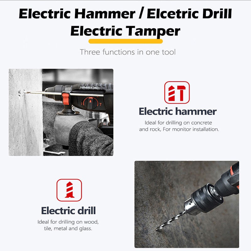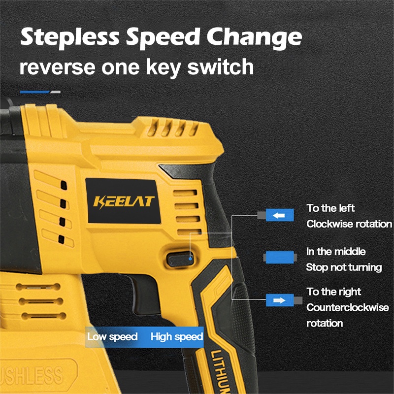 KEELAT KWHD001 Rotary Hammer Drill Driver 800W Impact Drill Cordless Hammer Impact Drill 3 Mode Can Drill Cement Boards