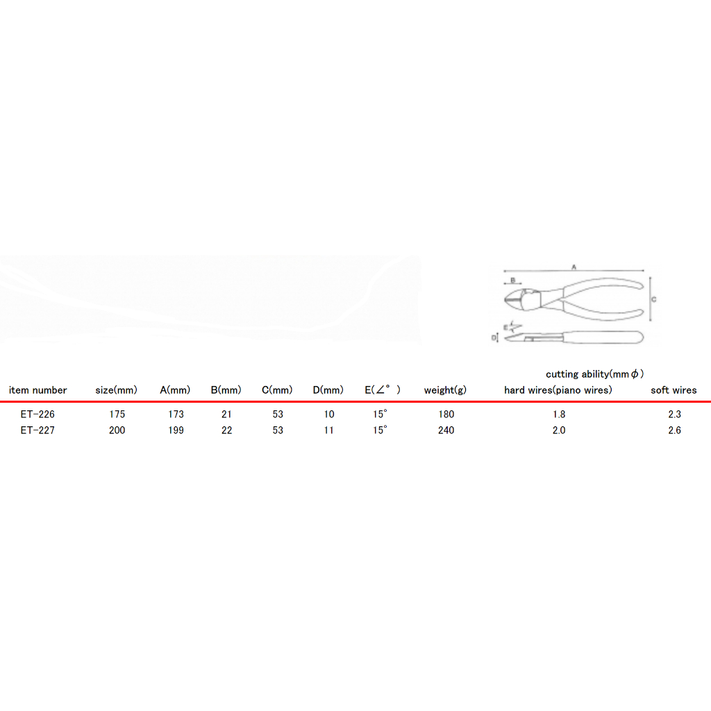 KEIBA Diagonal Cutter / Piano Wire Cutter ET-227 (200mm)
