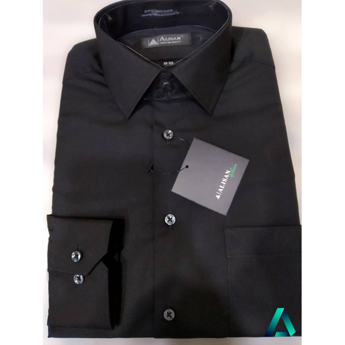KEMEJA HITAM Men's Shirt Black Plain Long - Regular