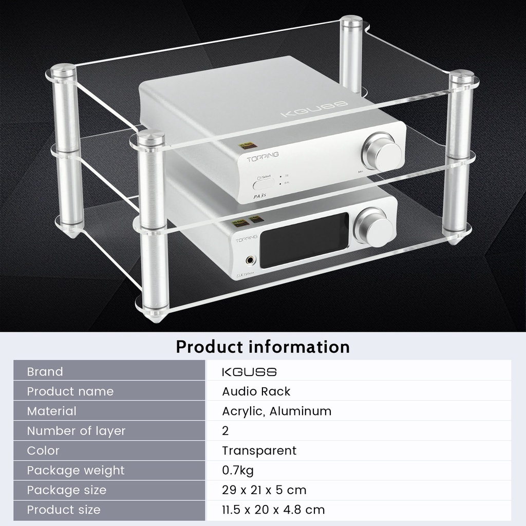 KGUSS acrylic frame HIFI amplifier amp decoder frame rack transparent equipment big size