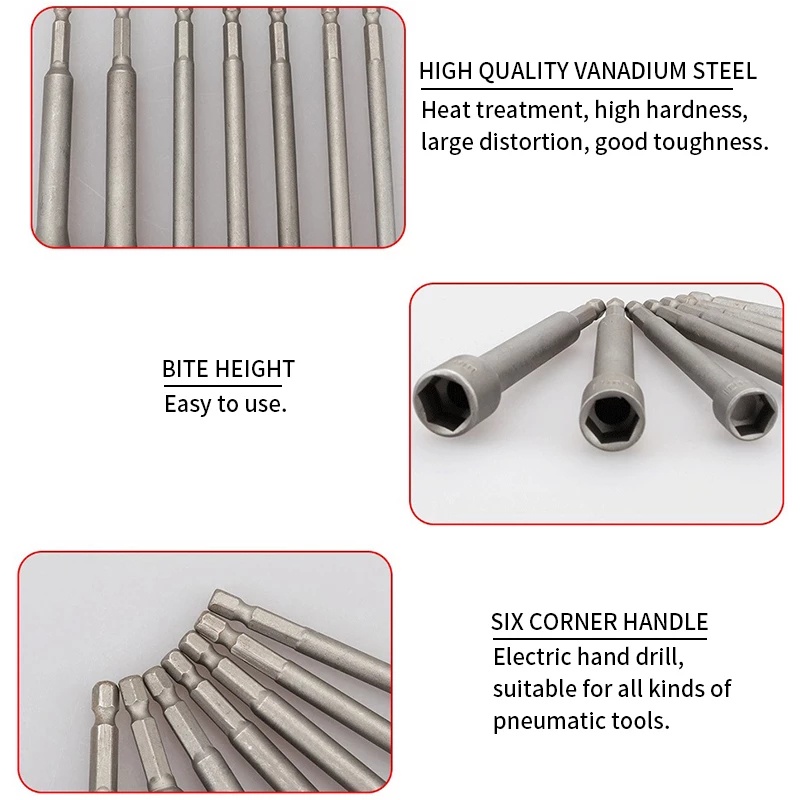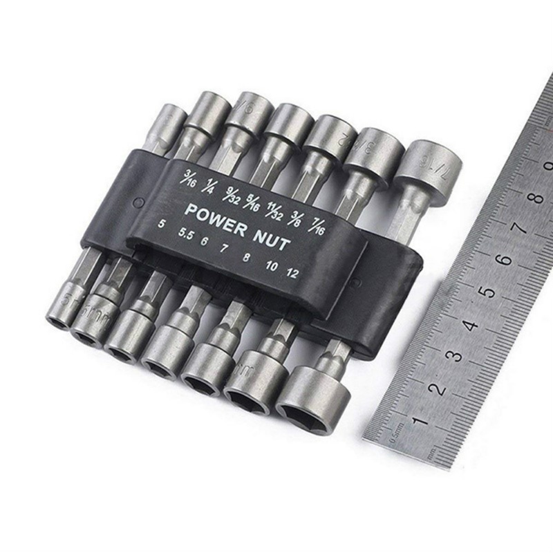 KIPRUN 14Pcs 5-12mm Hexagon Nut Driver Drill Bit Socket Screwdriver Wrench Set Drill Bit Adapter 1/4" Hex