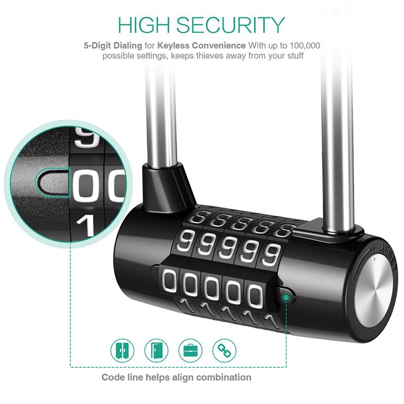 KIPRUN 5 Digit Combination Padlock Gym Lock Luggage Travel Lock for Toolbox, Closet, Closet, Bicycle, Luggage