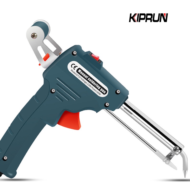 KIPRUN Auto Welding Automatic Feed Soldering Iron Gun, 220V 60W Electric Temperature Tool Adjustable Solder Tool Kit Fast Heating, with Lead-free Wire, Desoldering Pump, Tweezers