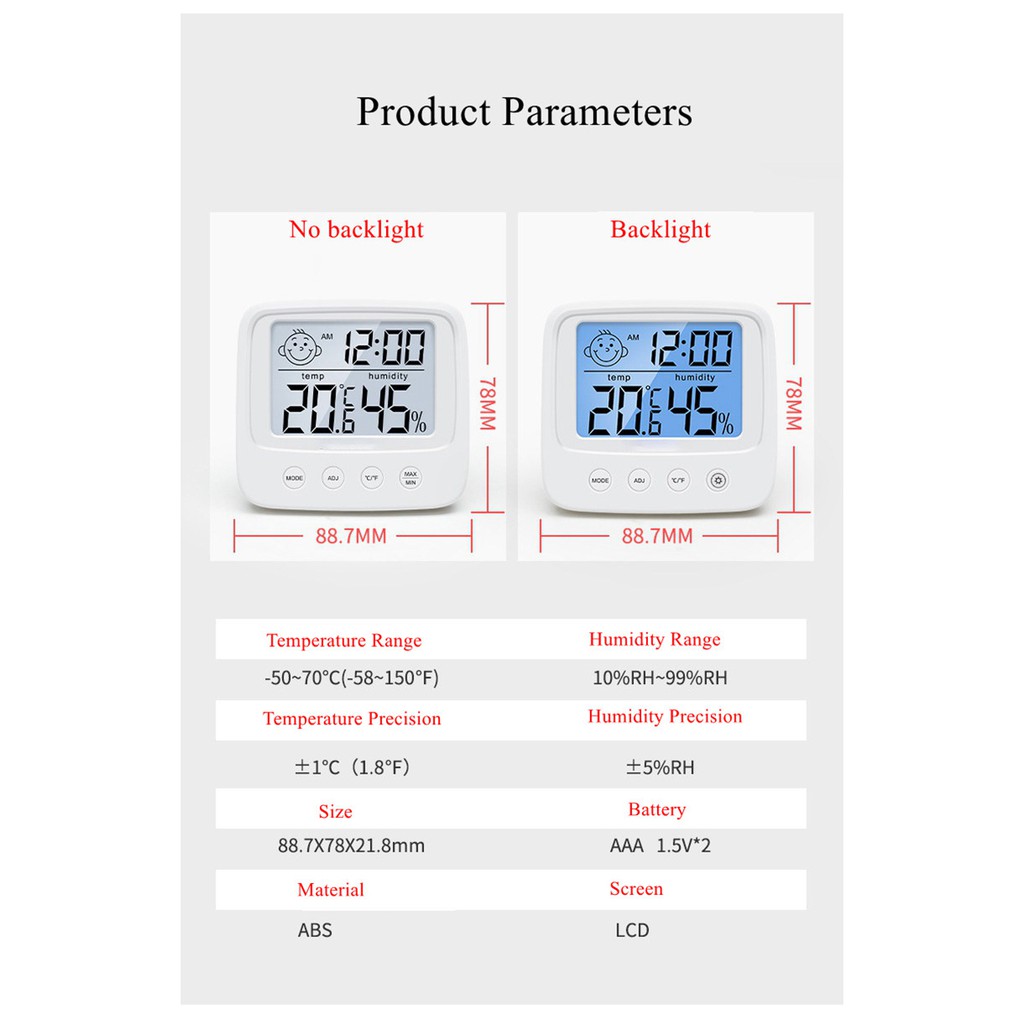 KIPRUN Digital Temperature Humidity Meter, Home Indoor LCD Electronic Thermometer Hygrometer Sensor Humidity Meter Thermometer Hygrometer Gauge, Smile Face Design with Hanging Hole