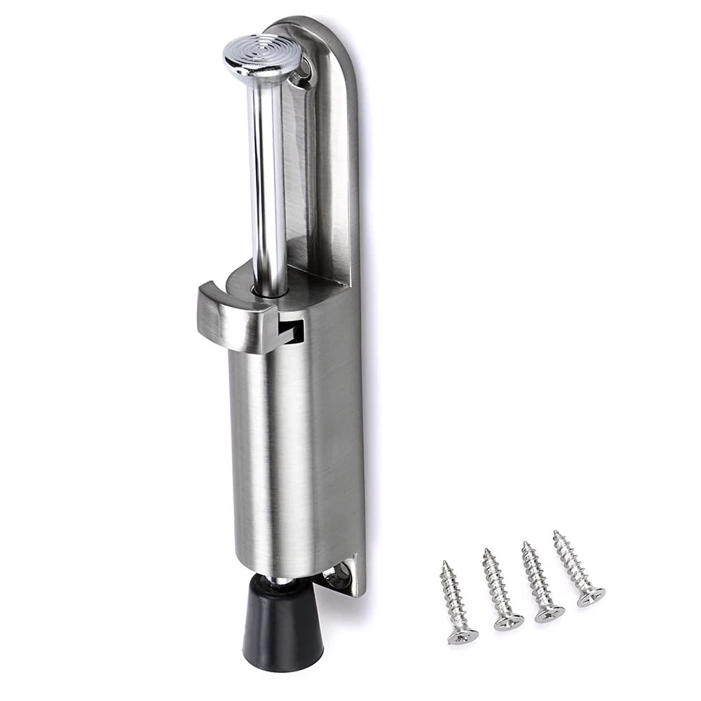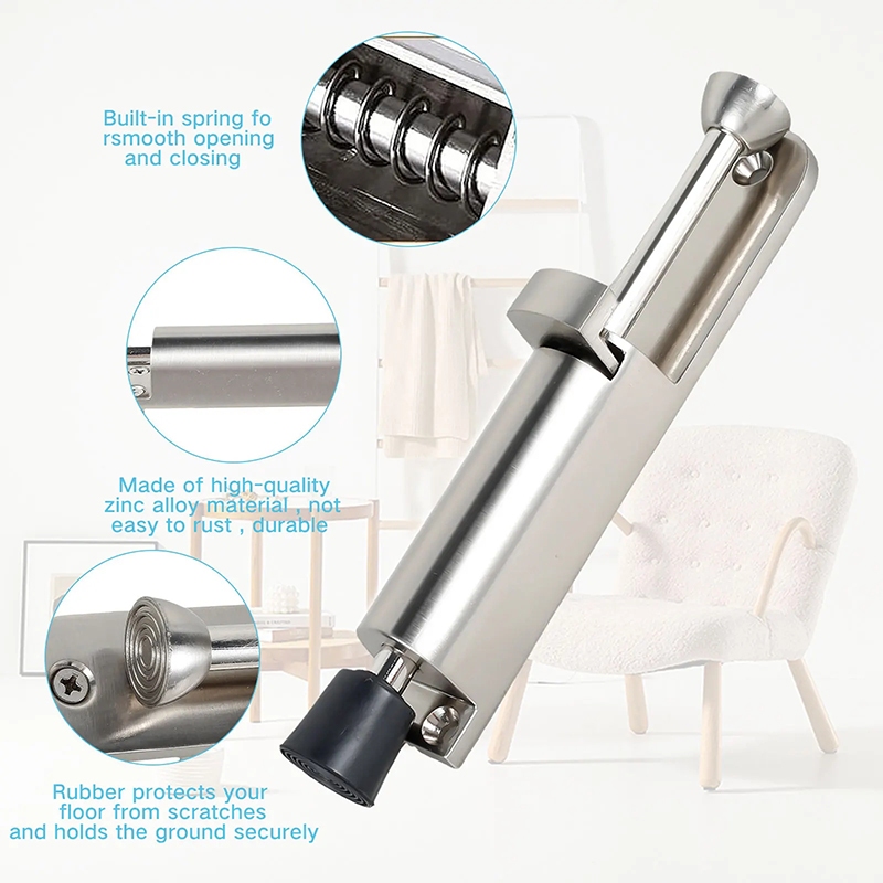 KIPRUN Kickdown Door Stop, Stainless Steel Telescopic Door Stopper Silver Spring Loaded Step-On Door Holder Door Stops, Adjustable Heavy Duty Door Locks Holder