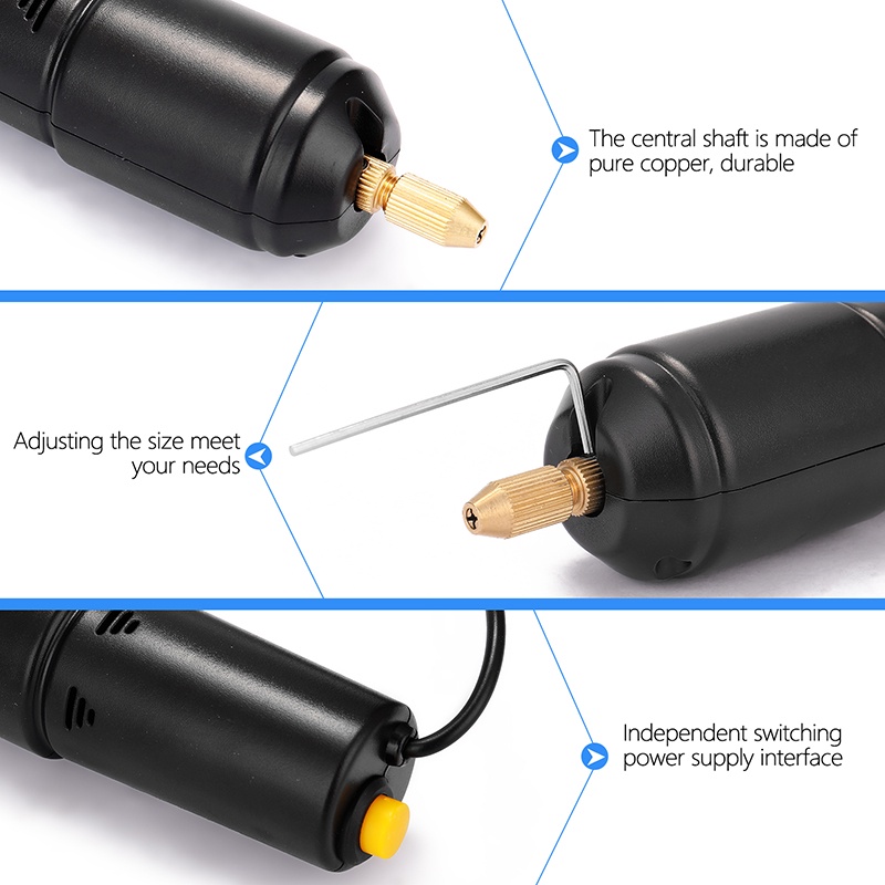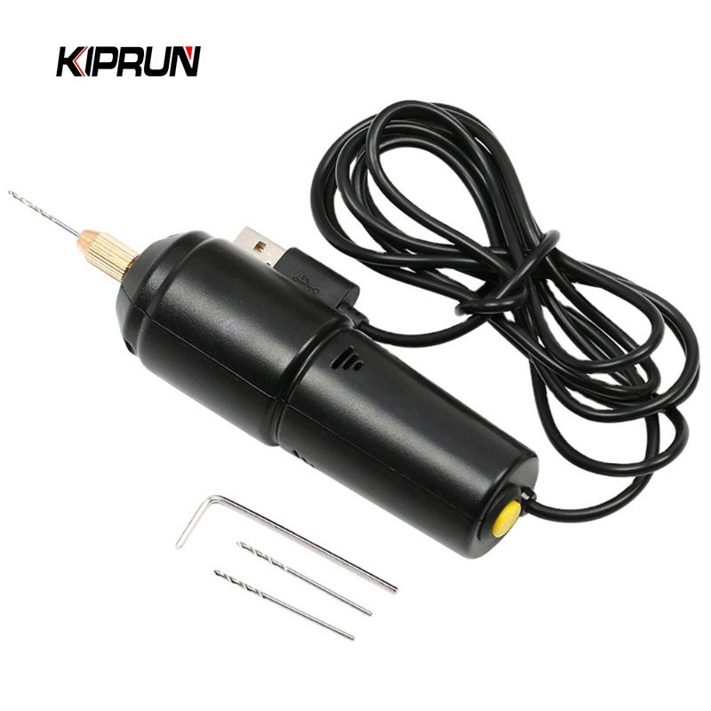 KIPRUN Mini Electric Hand Drill, 5V USB Powered Handheld Rotary Drill Set with Twist Drill Bits for Pearl Epoxy Resin Jewelry Making DIY Metal Wood Crafts Tools, with 3pc Bits