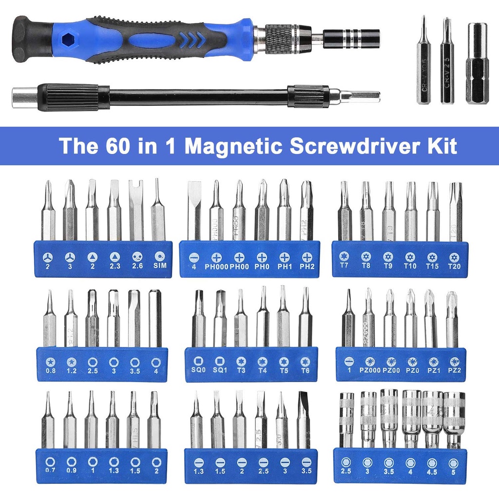 KIPRUN Precision Screwdriver Set, 60 in 1 with 56 Bits Magnetic Screwdriver Kit, Professional Repair Tools Kit