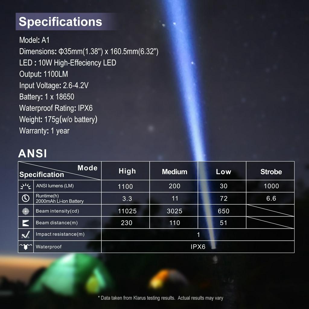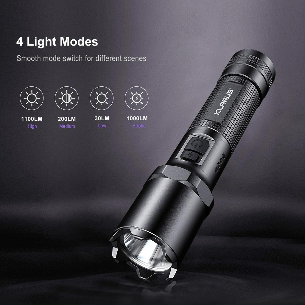 KLARUS A1 Compact Tactical Rechargeable Flashlight (1100 Lumen)