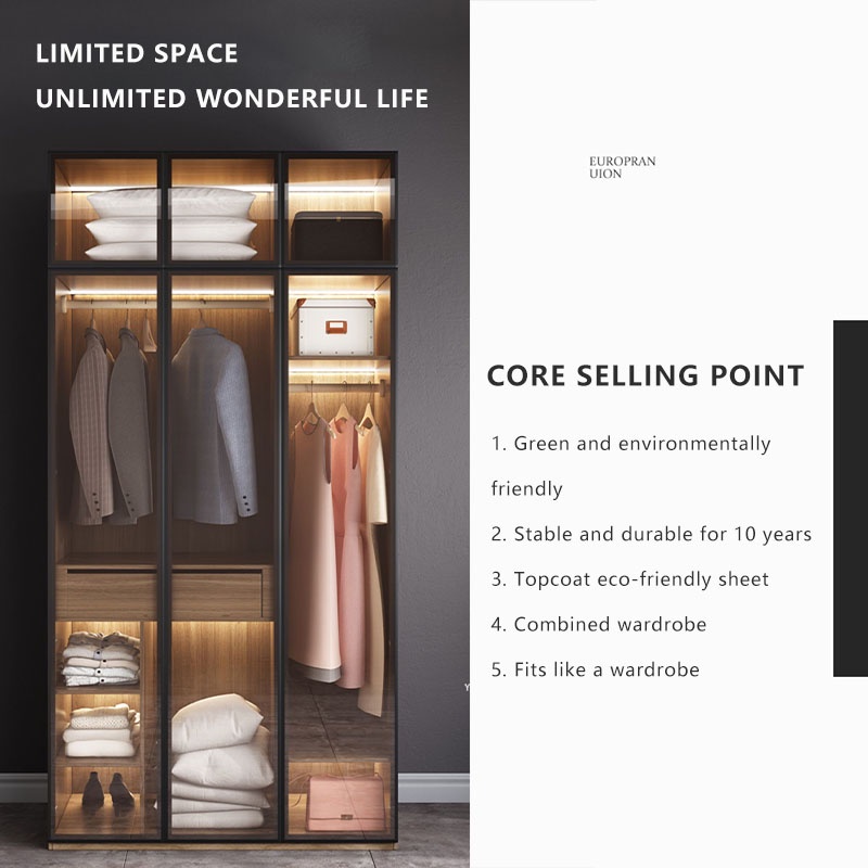 KLASS 2/3 Door Design Walk-in Wardrobe with LED Lights (Conner Wardrobe available)