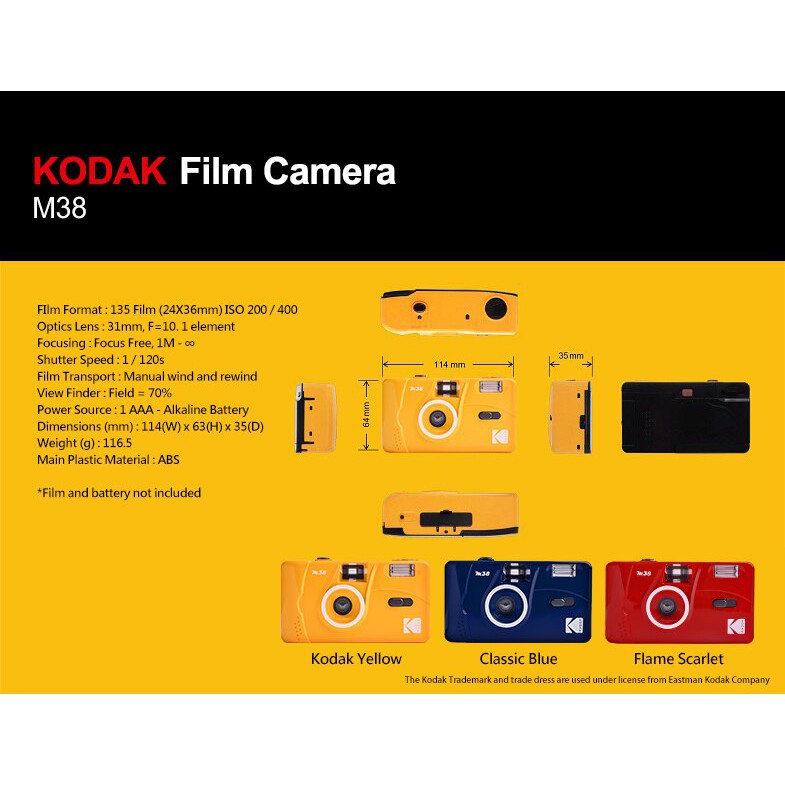 KODAK M38 35mm Roll Film Camera - Reloadable - M35 Upgrade Version