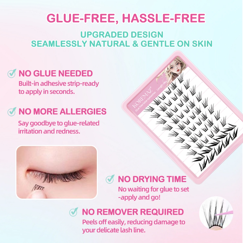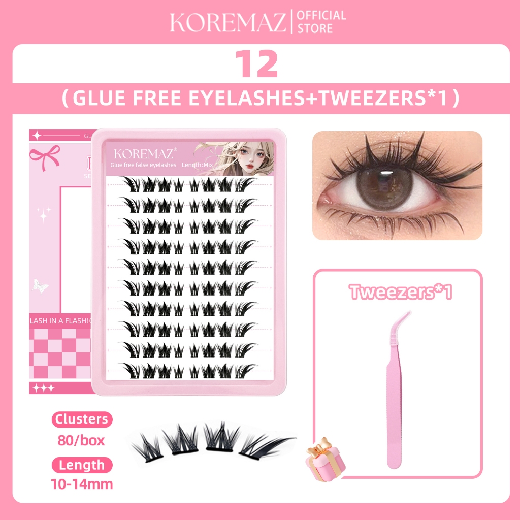 KOREMAZ Glue Free False Eyelash | Self-Adhesive Eyelash | No Glue Eyelash Lash|Free tweezers included