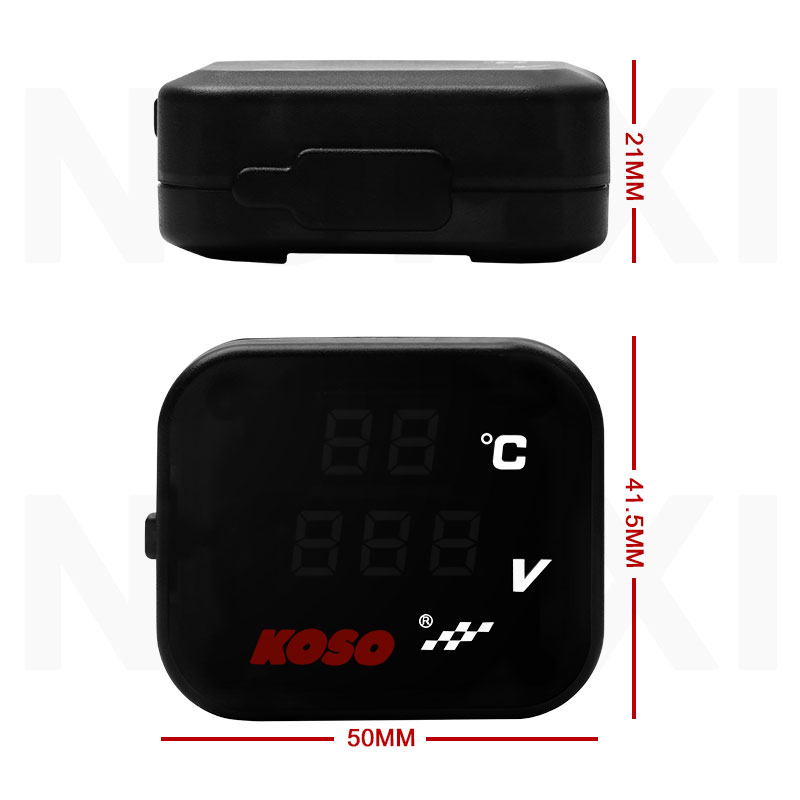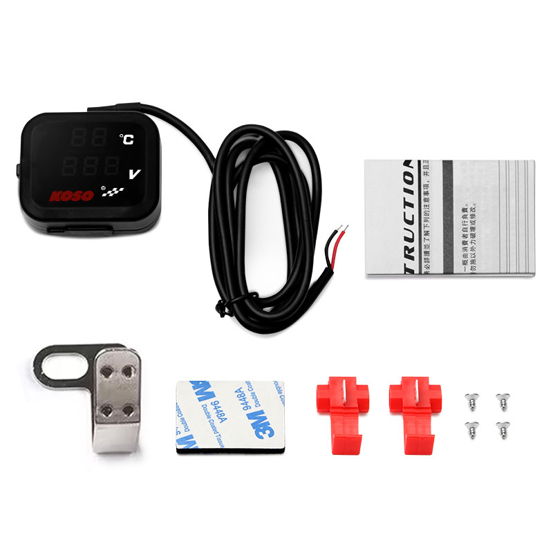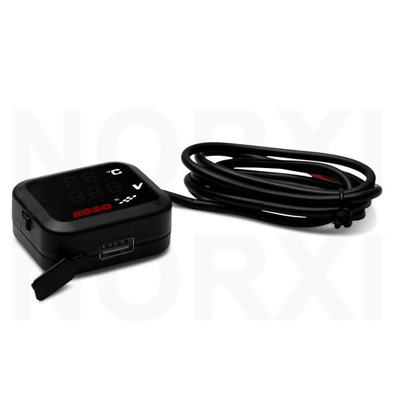 KOSO Motorcycle Voltmeter 3 IN 1 with Quick charging USB port Temperature display Gear Indicator