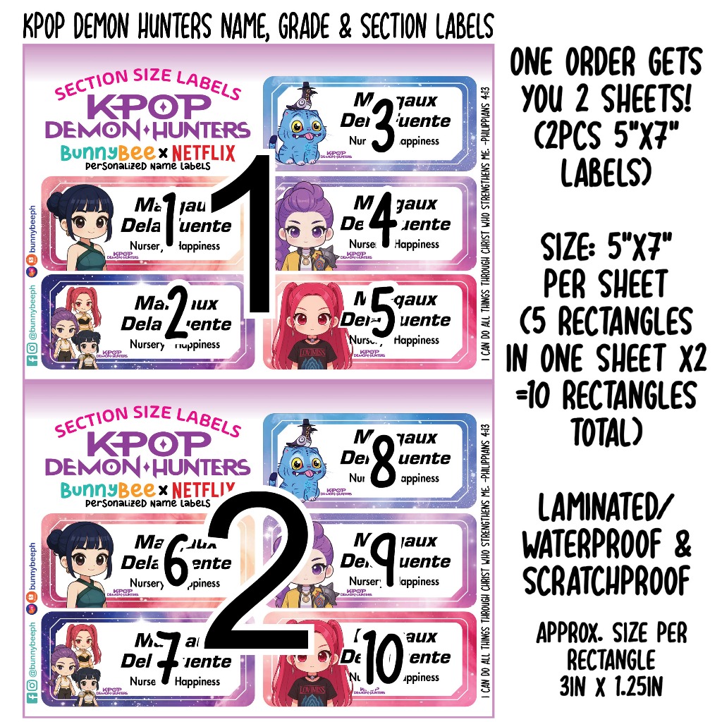 KPOP Demon Hunters Personalized Name Grade & Section Labels Laminated Waterproof Stickers Huntrix