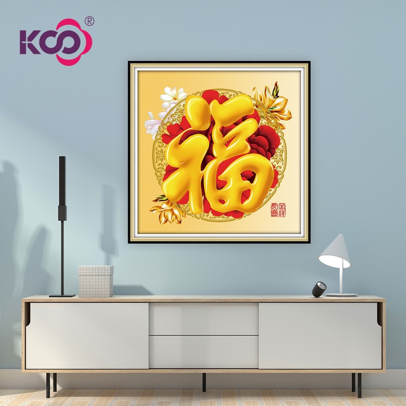 KS 5d Diy Diamond Painting Fu Character New Year Layout Mosaic Art Wall Home Decoration