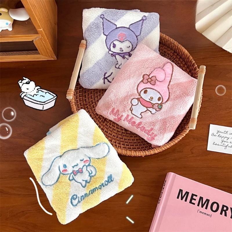 KT Hand Towel Coral Velvet Cartoon Kuromi Towel Kitchen Cloth Bathroom Hanging Towel