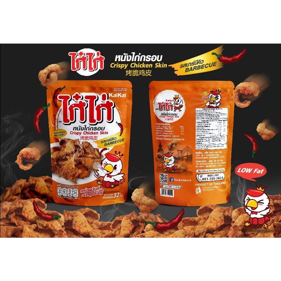 Kaikai Crispy Fried Chicken Skin Thai Snack Barbecue Flavour Party Camping (32g)