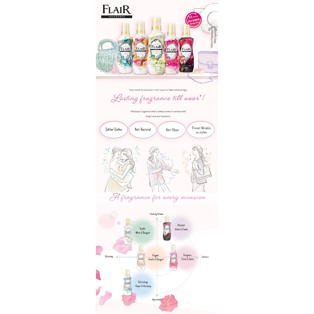Kao Flair Fragrance Fabric Softener 520ml