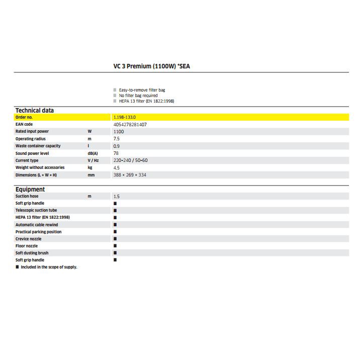 Karcher Bagless Dry Vacuum Cleaner VC3 Plus