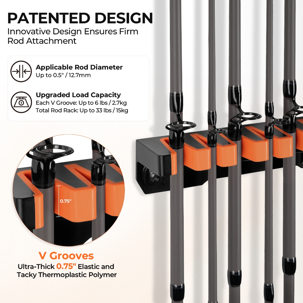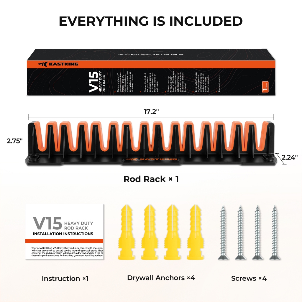 KastKing Patented V15 Vertical Fishing Rod Holder-Wall Mounted Fishing Rod Rack, Store 15 Rods or Fishing Rod Combos in 18 Inch.
