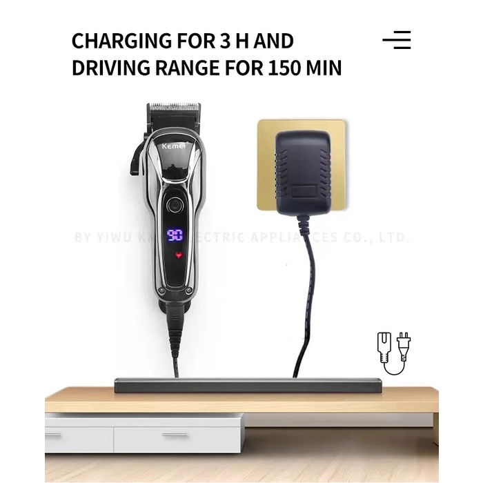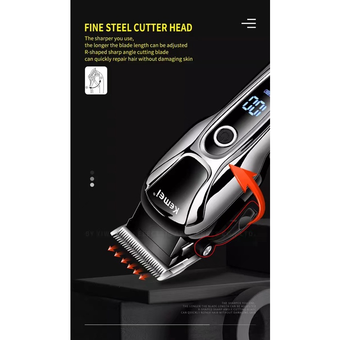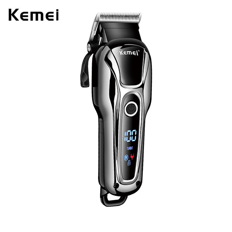 Kemei KM-1990 Silver Hair Clipper Professional Hair Trimmer Hair Cutting Machine Electric LCD Display Barber Fade Cutter