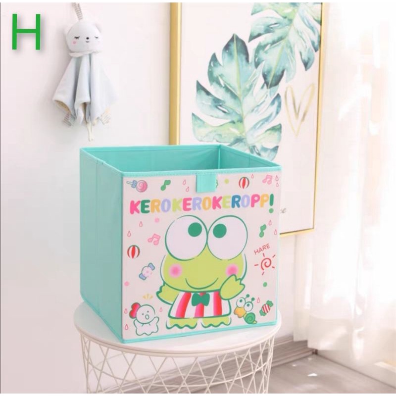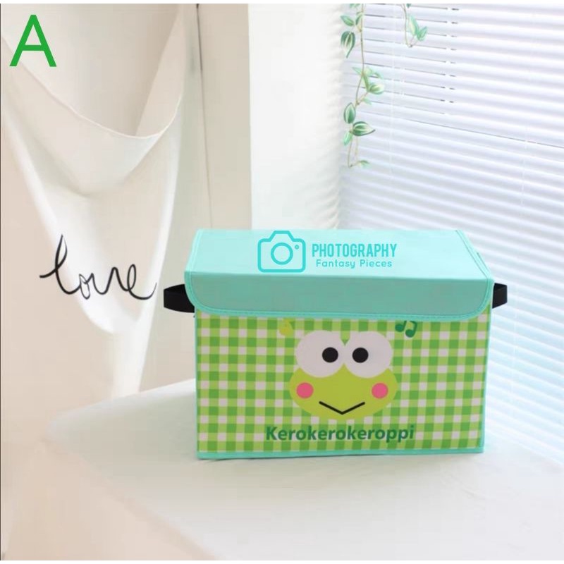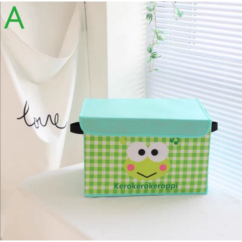 Kerokerokeroppi/Little Twin Star LTS Velcro Storage Box Foldable Box Keroppi Collapsible Organizer Basket With Lid/Cover