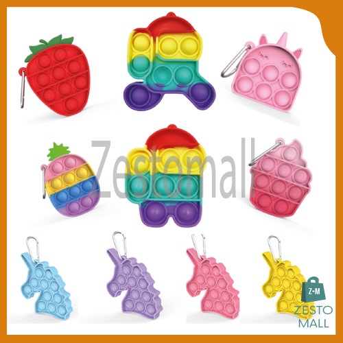 Keychain Fidget Toy Mini Pop It Baby Birthday For Kids Among Us Push Pop It Fidget Toy