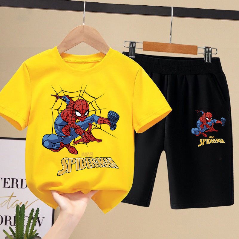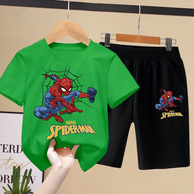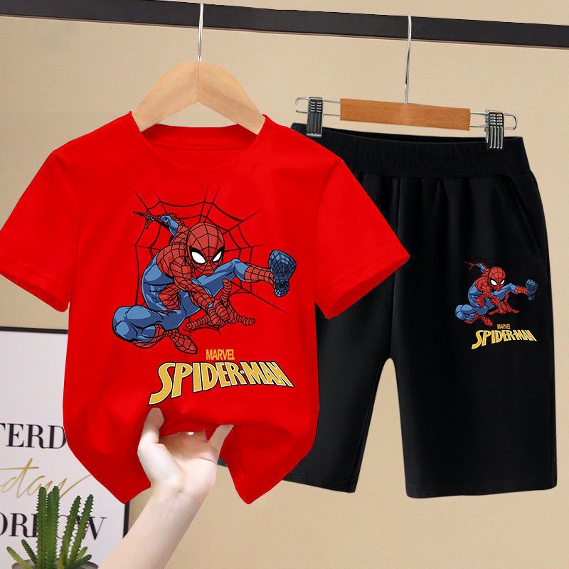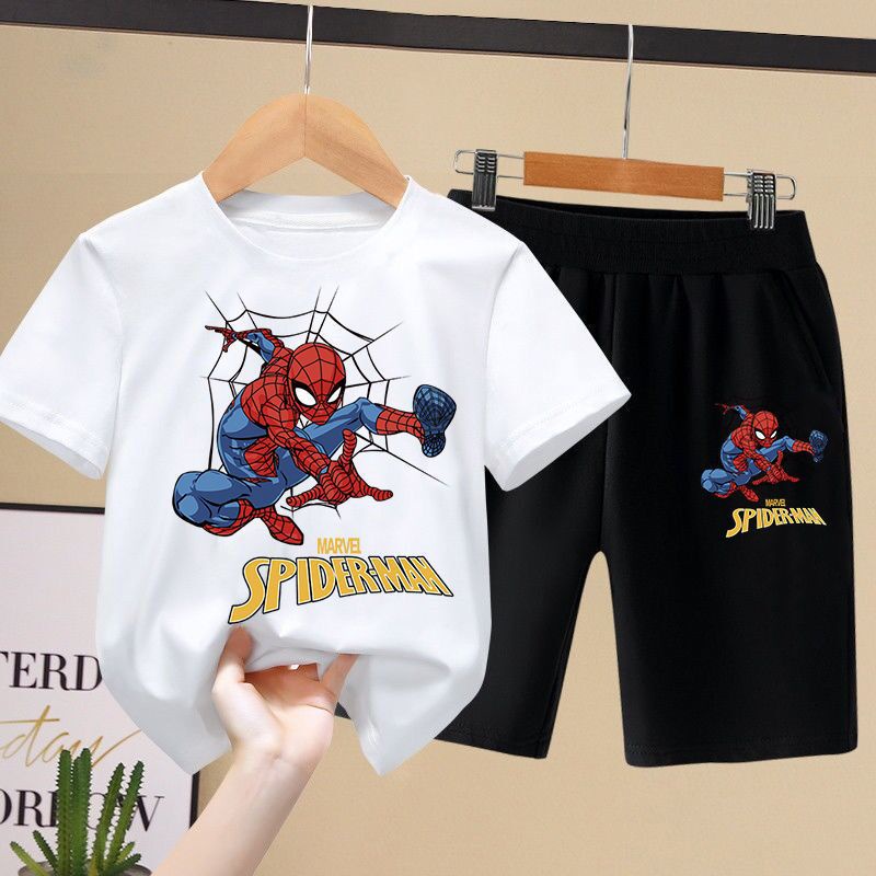 Kid's Spiderman Shirt Pants Suit Set Kid's Short Sleeve Clothes Boys Suits Spiderman Clothes Baby Top and Pants Set
