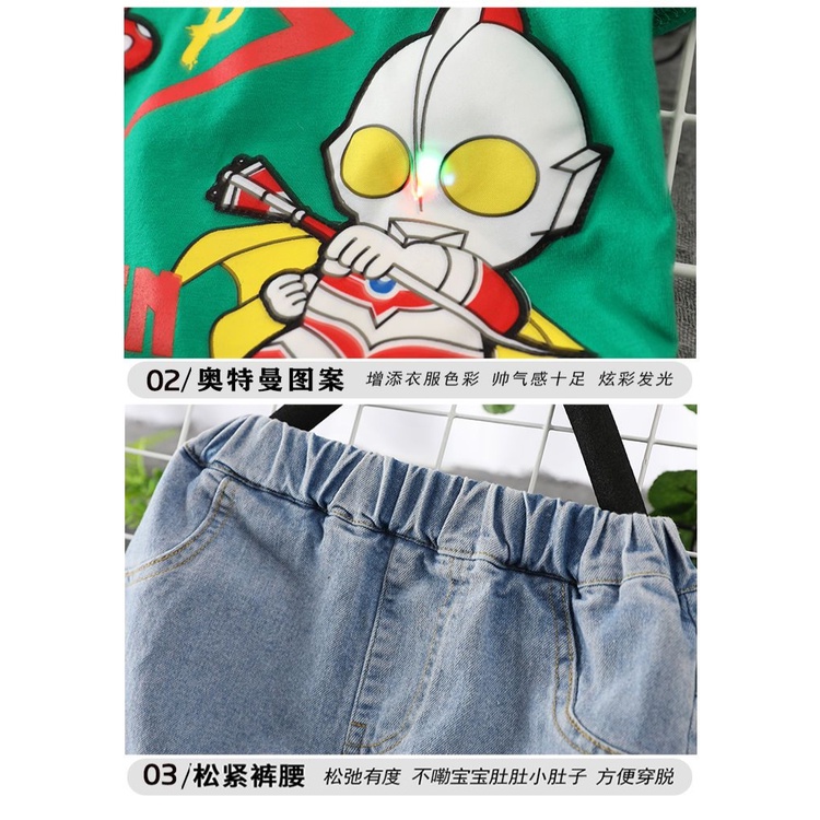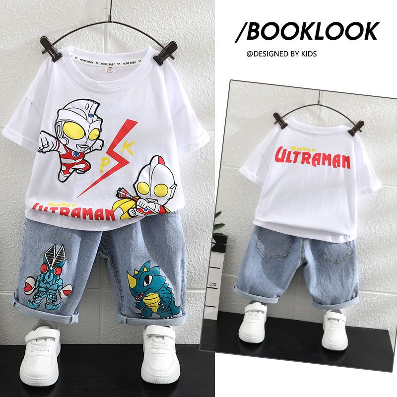 Kid Ultraman Clothes Baby Boy Ultraman Costume T Shirt Pants Suit Boy's Short Sleeve Shirt Suit Ultraman Suit Set