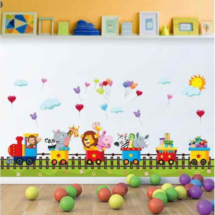 Kids Cartoon Animal Wall Stickers, Animals Train Wall Stickers for Kids Rooms, Animal Train