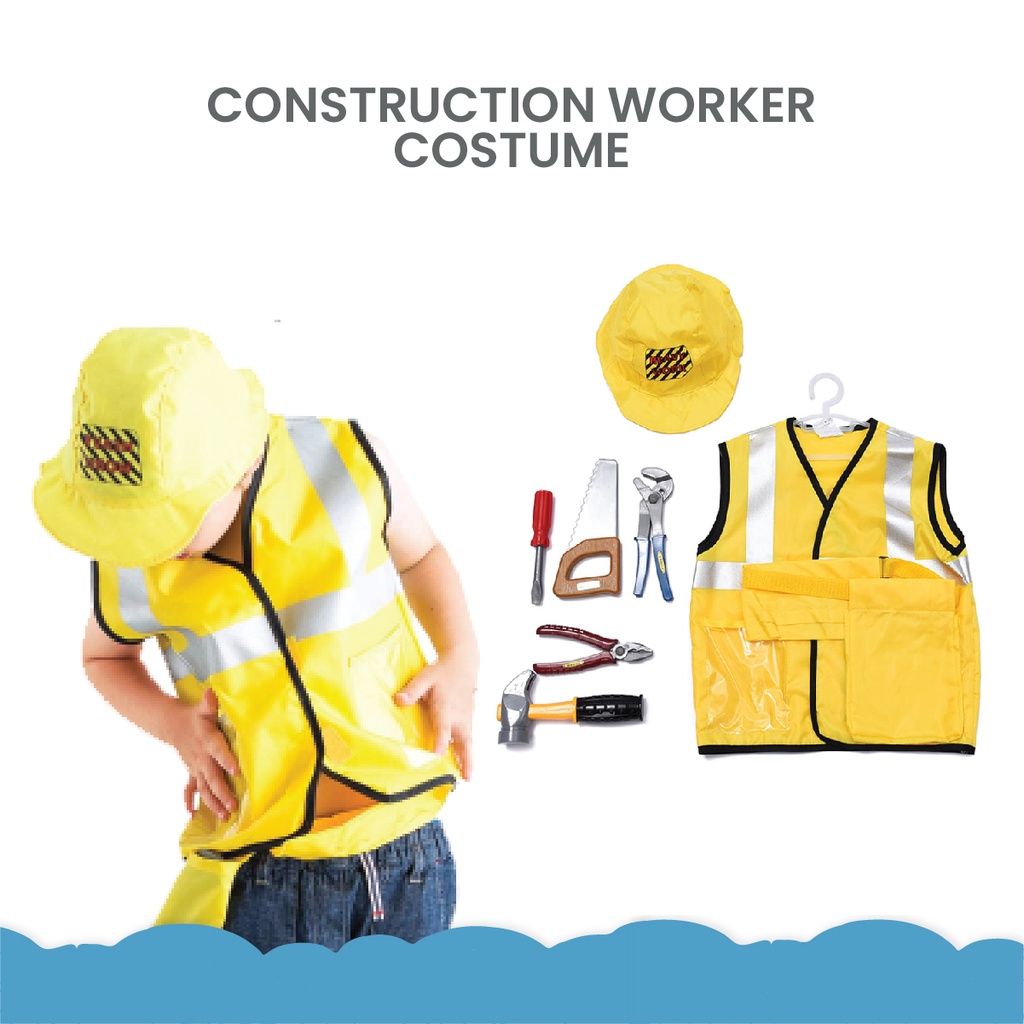 Kids Costume Role Play Set with Tools & Accessories - Free Size Dress Up Pretend Play Career Occupation for Girls Boys