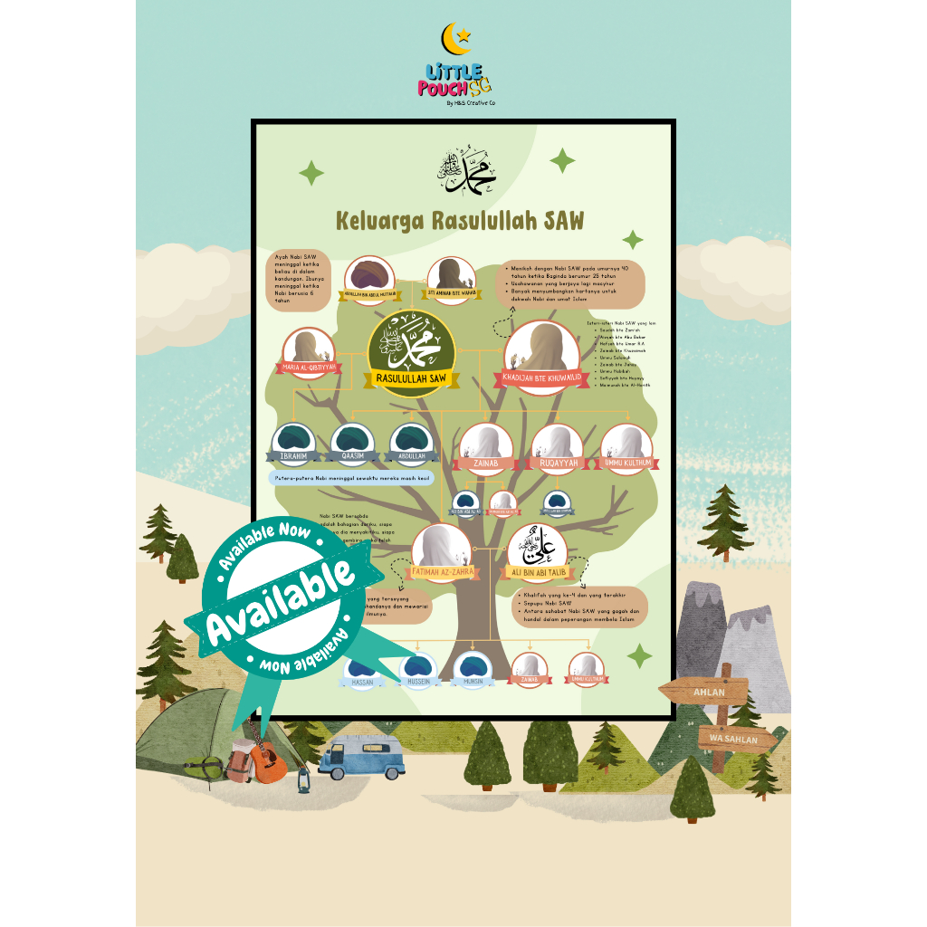 Kids Educational Posters | Nasab Rasulullah | Family Tree | Sifat 20 Allah | A3 and A4 Sizes