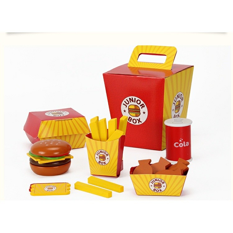 Kids Wooden Toy Pretend Play Kitchen Playset Sushi Pizza Hotpot Burger Salad Fast Food Cake Oven Sensory Montessori