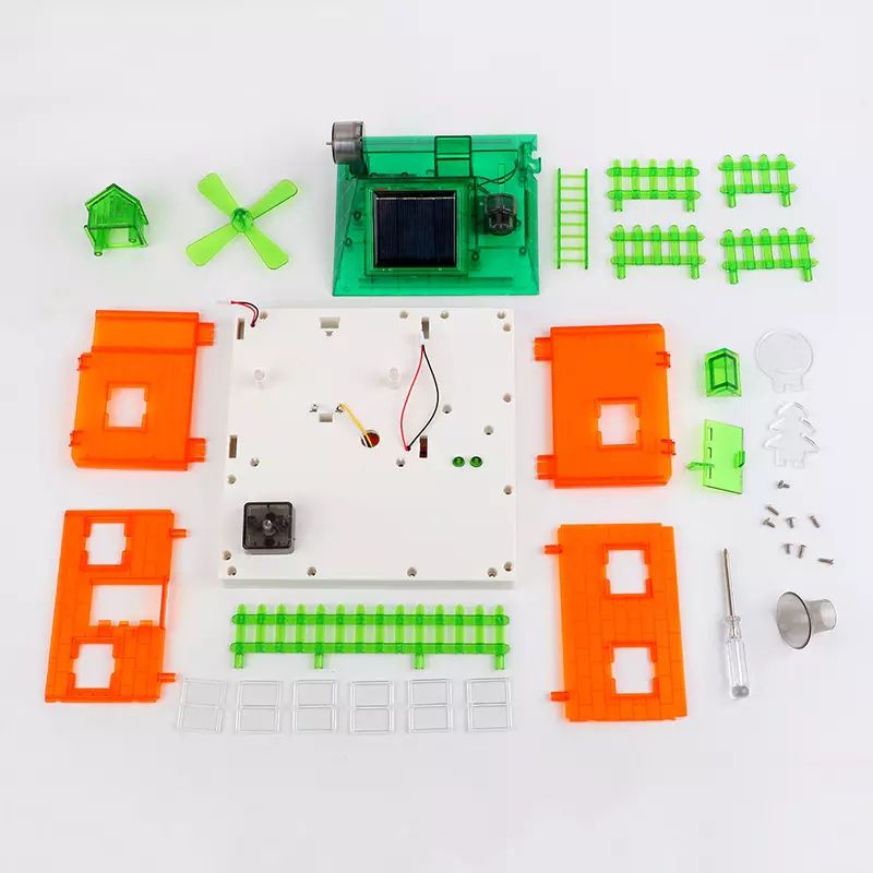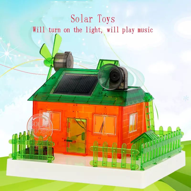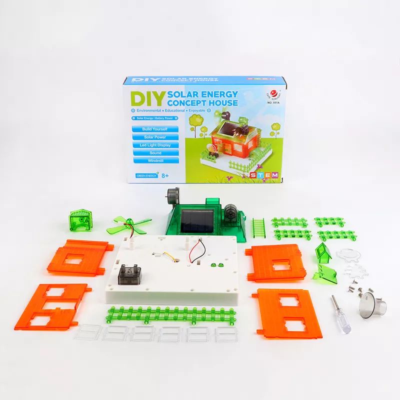 Kids learning DIY STEM Science Toys Solar energy concept house Demonstration