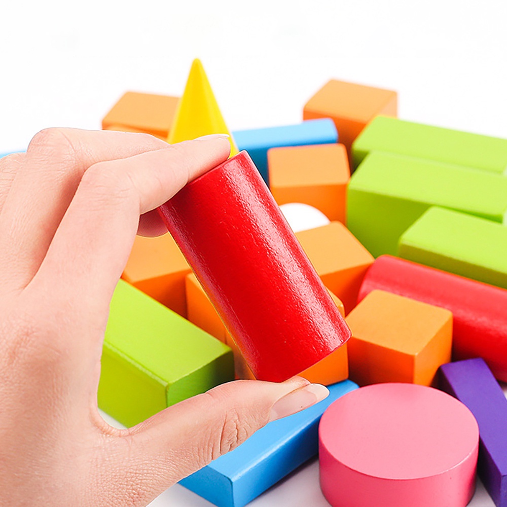 Kindergarten Wooden Building Blocks Colorful 3D Geometric Shape Stacking Blocks Children Gifts Kids Learning Math Education Toy