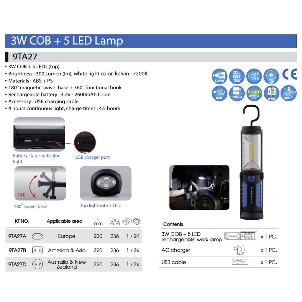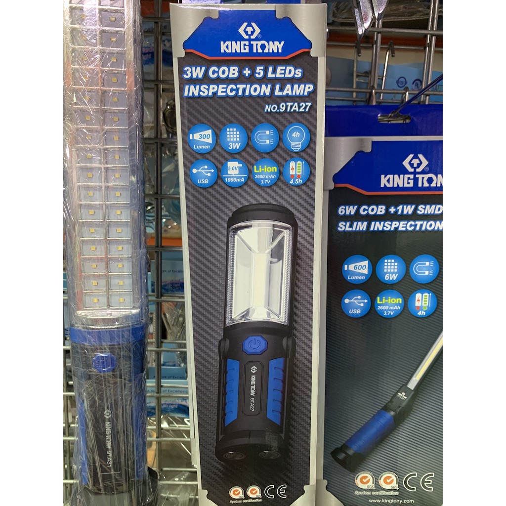 King Tony 9TA27 LED Work Lamp/ Rechargeable Working Light with Magnetic Base/ 3W COB + 5 LED Lamp